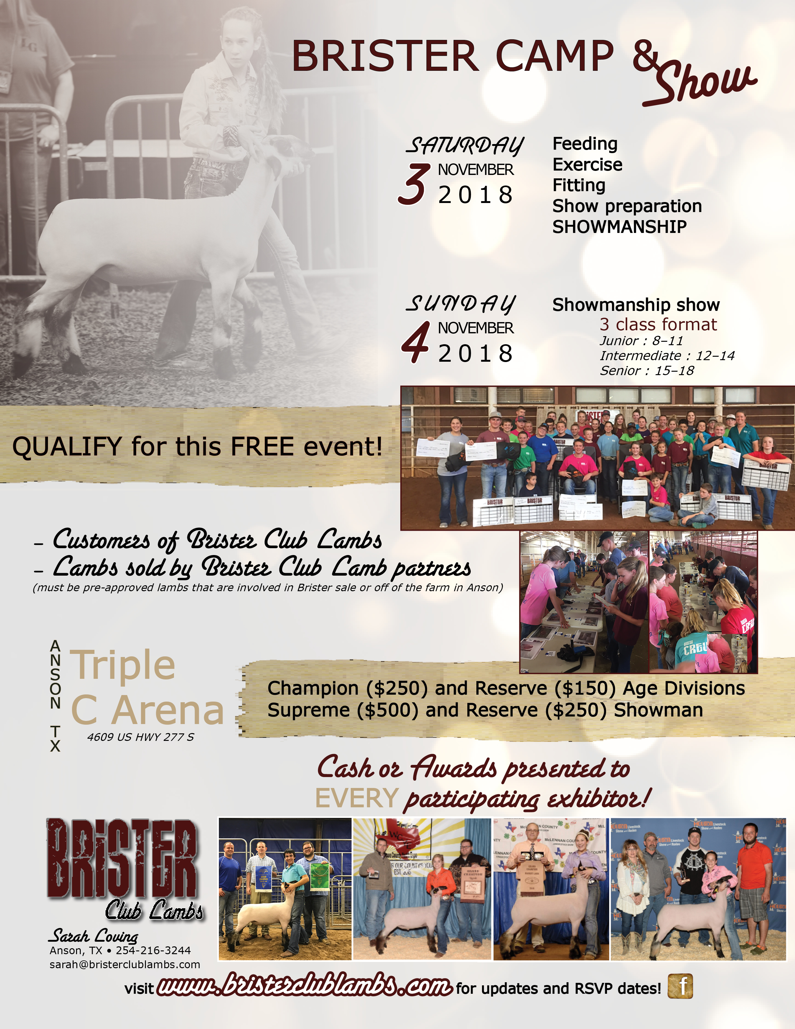 3p.m. CST • Brownwood, Texas at the School Ag Barn